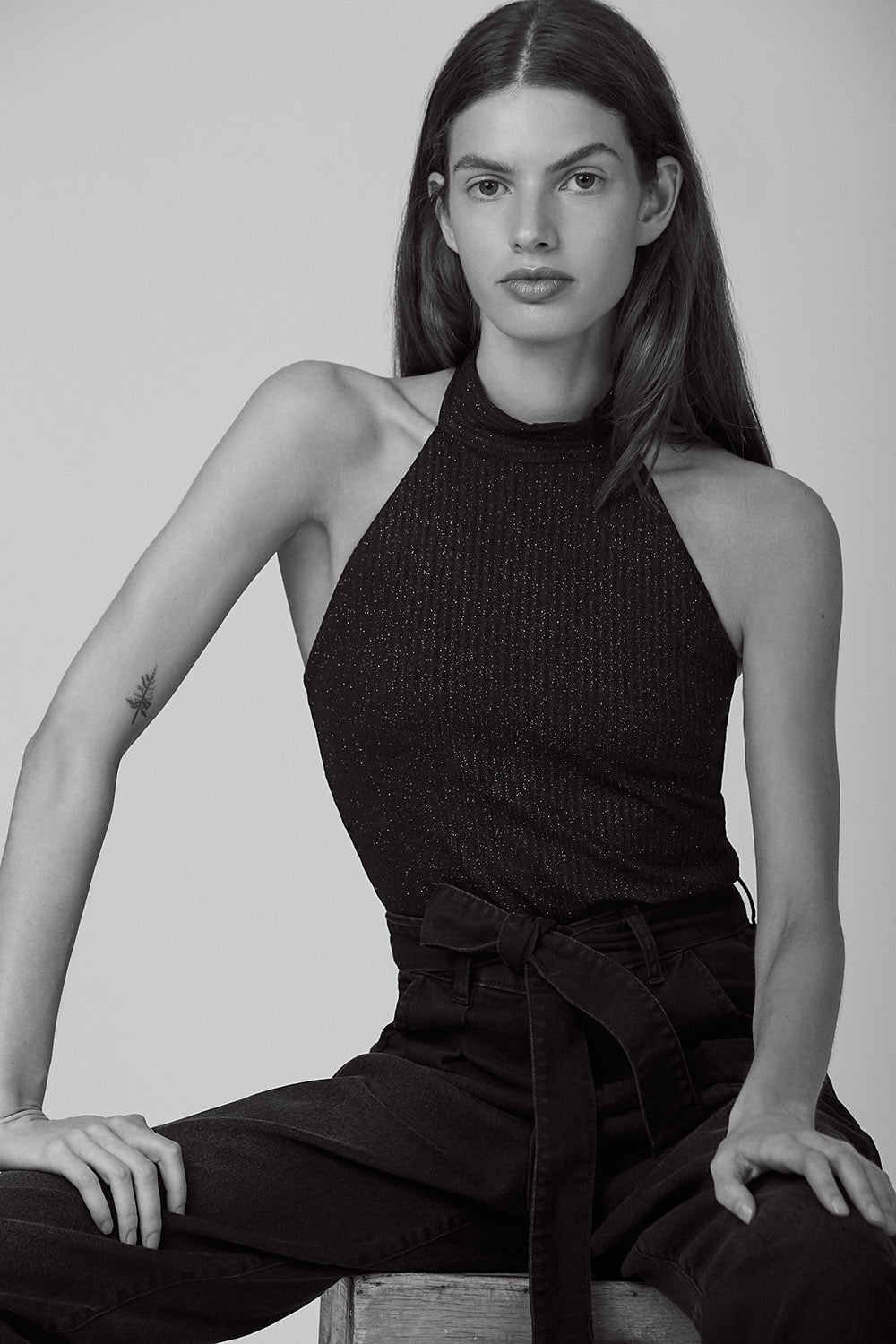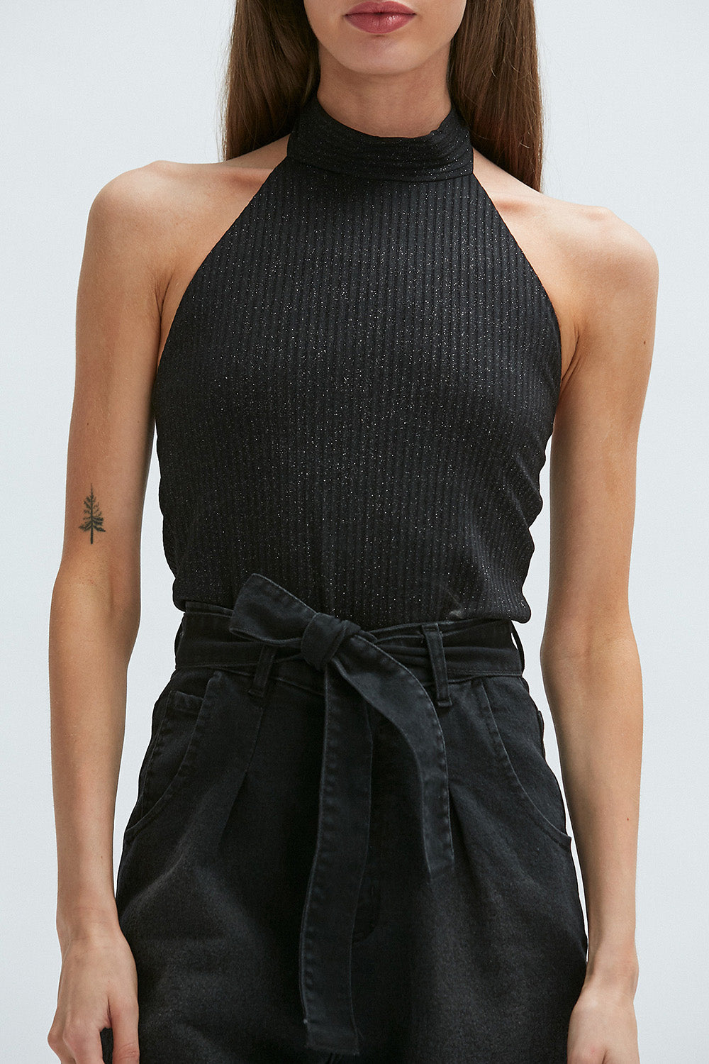 Top De Morley Con Lurex. Sin Mangas, Con Escote Cerrado Y Cuello Tipo Polera. Viscosa 95% Elastano 5% Lavar A Mano