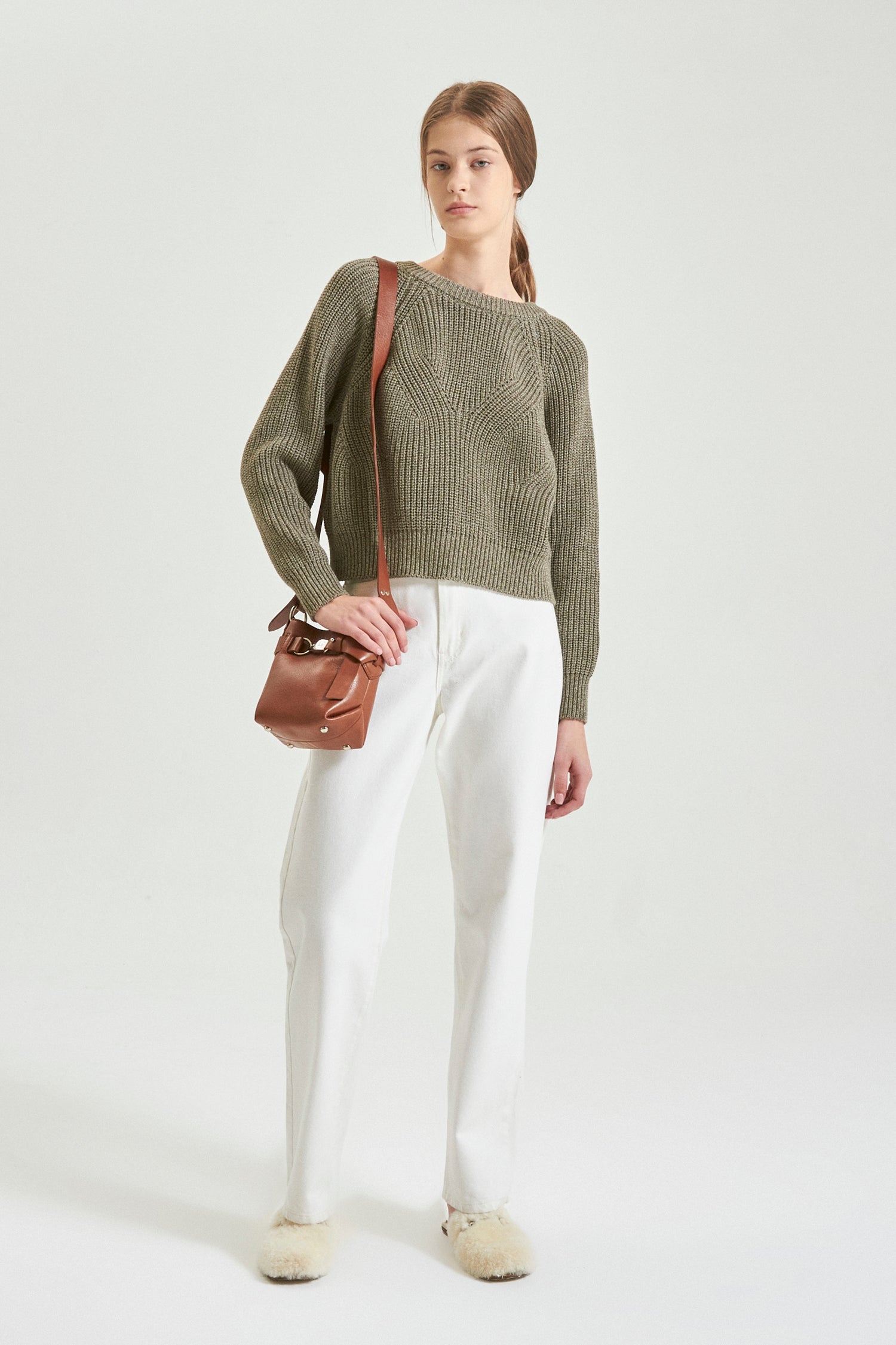 Sweater Cuello Redondo Tejido Con Diseño En Punto Perle. Tajo En Centro Espalda. Terminaciones De Escote, Puños Y Ruedo En Rib. 100% Algodón Moulinado .