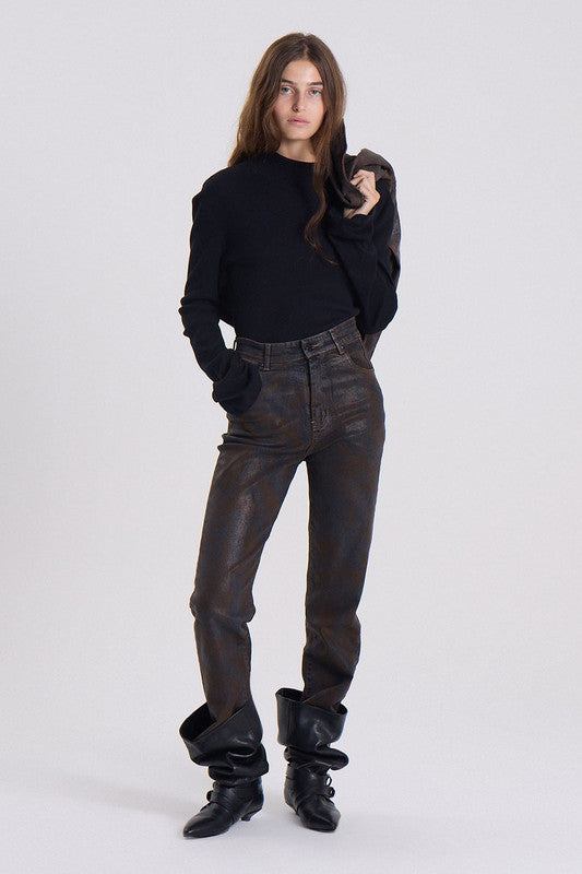 Polera De Morley Con Viscosa, Fit Loose. Manga Larga Con Puño. Escote Redondo A La Base. Ruedo Con Forma Curva.