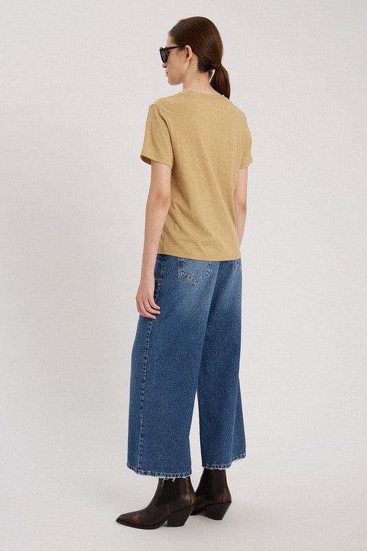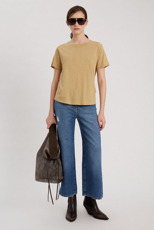 Remera Manga Corta De Escote Redondo. Calce Clásico. Largo Hasta La Cadera. Logo Bordado En Frente Y Detalles Con Costura 100% Algodón Peruano