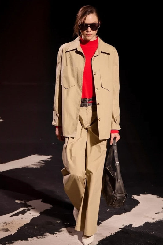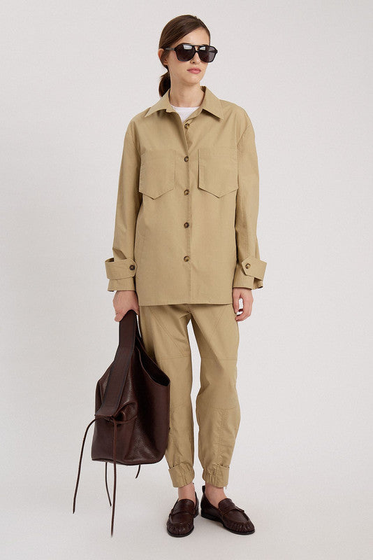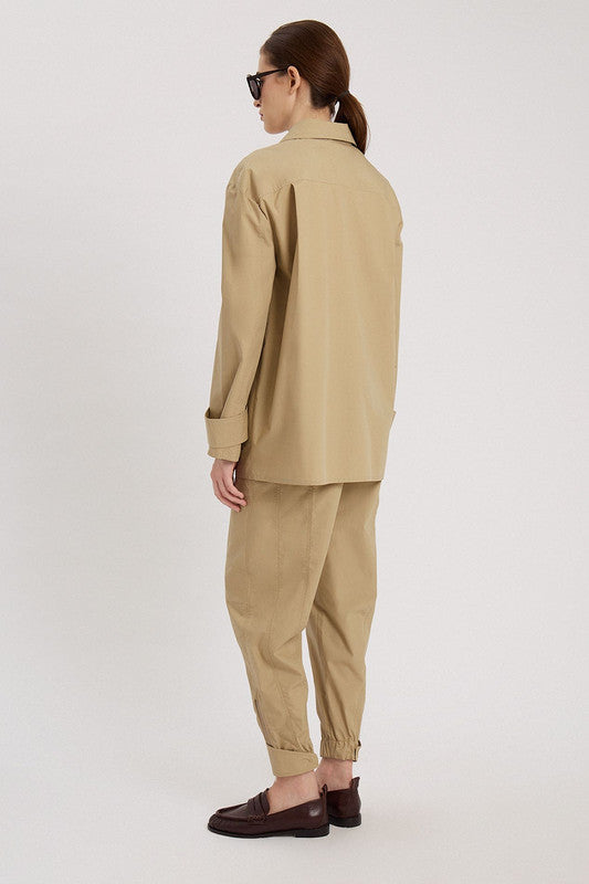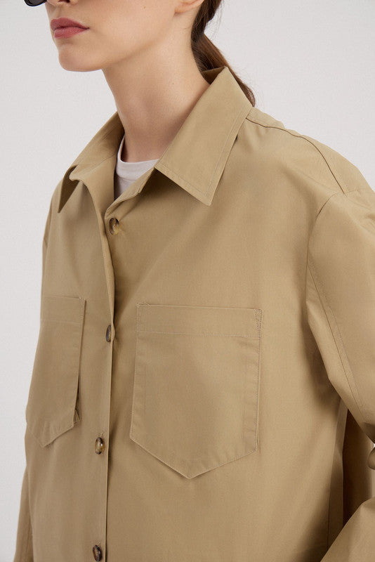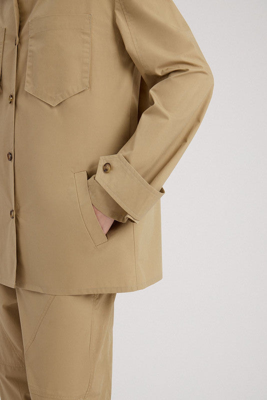 Camisa De Gabardina Con Doble Bolsillo Plaqué. Silueta Regular. Cuenta Con Detalle De Superposición En Los Puños. En La Parte Inferior Tiene Bolsillos Ojales. 100% Algodón