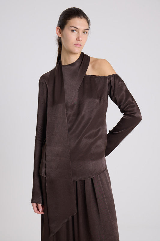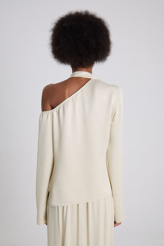 Top Asimétrico De Mangas Largas Con Hombro Descubierto.