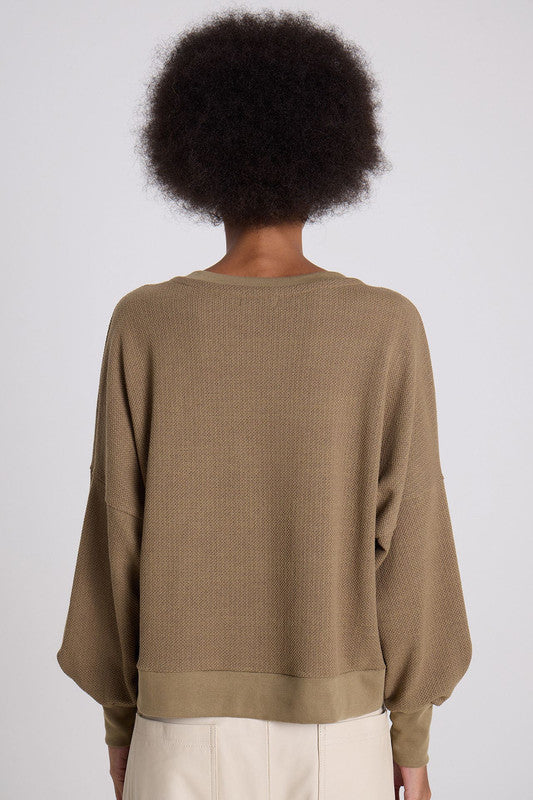Buzo En Rustico De Algodón Con Elastano. De Cuerpo Y Manga Amplia Con Cuello Redondo. 48,5% Algodón - 48,5% Poliéster - 3% Elastano