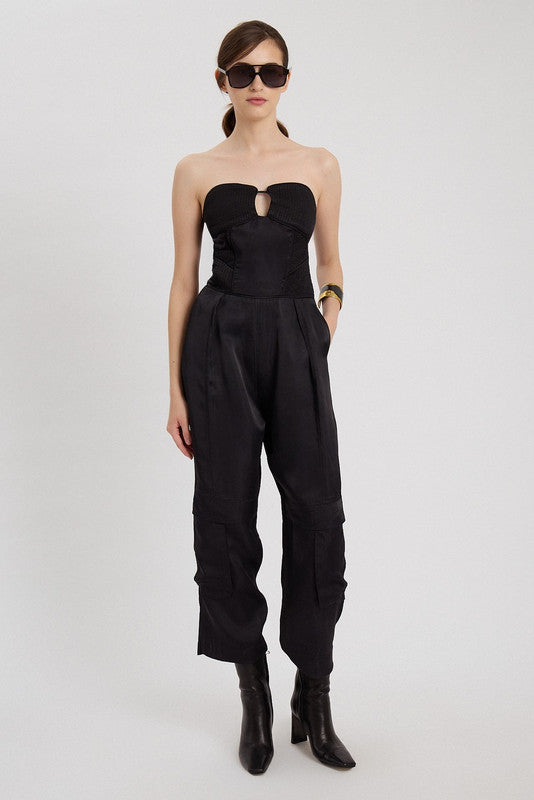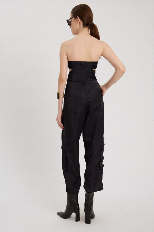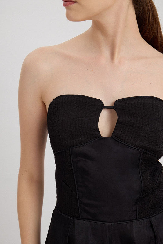 Entero Strpaless De Viscosa. Silueta Superior Estilo Corset Con Cut Out En Laterales Y Escote Geométrico. La Parte Inferior Es Estilo Barrel Con Ligera Curva. 100% Viscosa