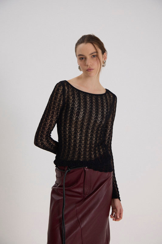 Sweater En Tejido De Viscosa Con Calados Ultrfinos. Silueta Fitted. 89% Viscosa 11% Poliamida