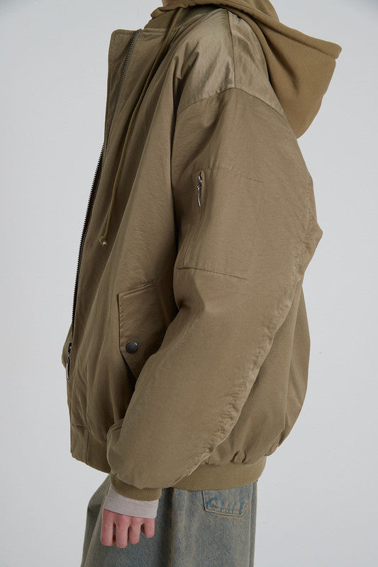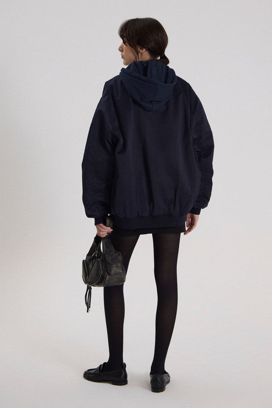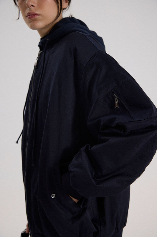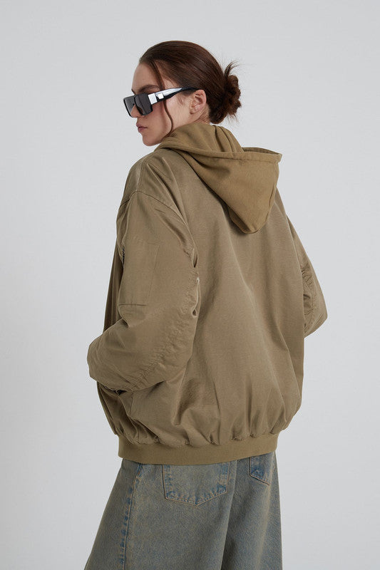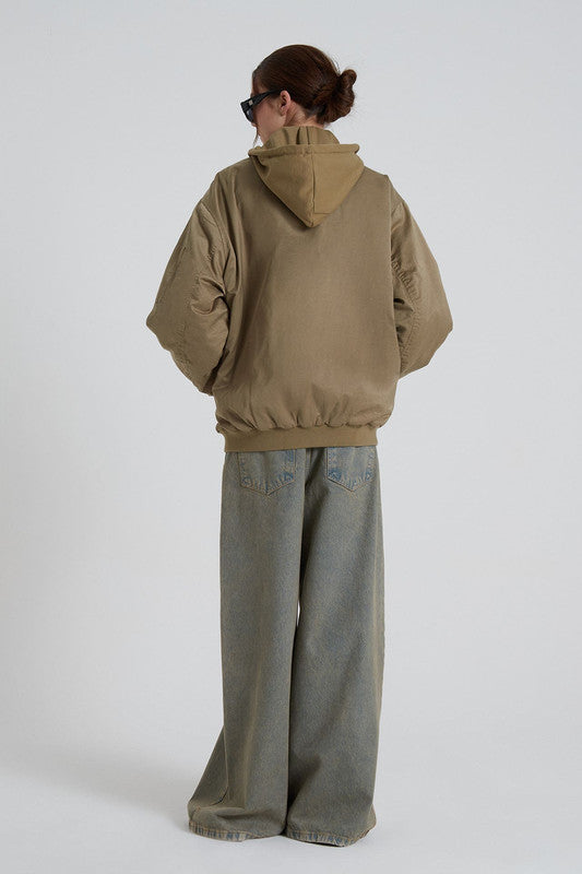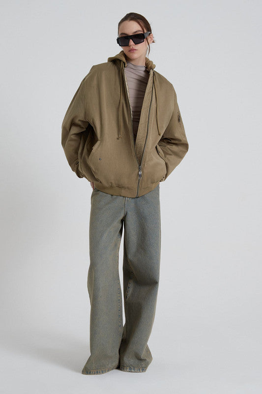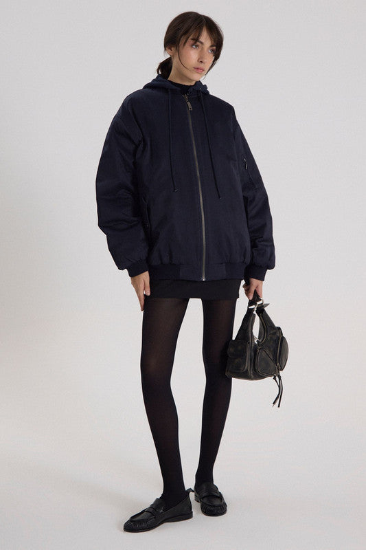Bomber Larga Con Silueta Loose. Cuenta Con Capucha Y Bolsillos Delantero. Acceso A Través De Cierre Delantero. 55% Algodón 32% Poliester 13% Poliamida