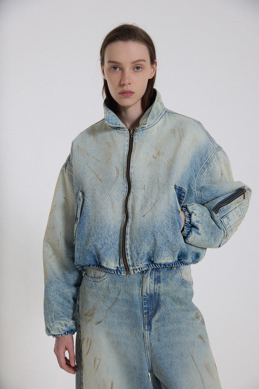 Campera Crop Tipo Bomber. Con Bolsillos Plaqué Diferenciados En Delantero Y En Manga. 100% Algodón