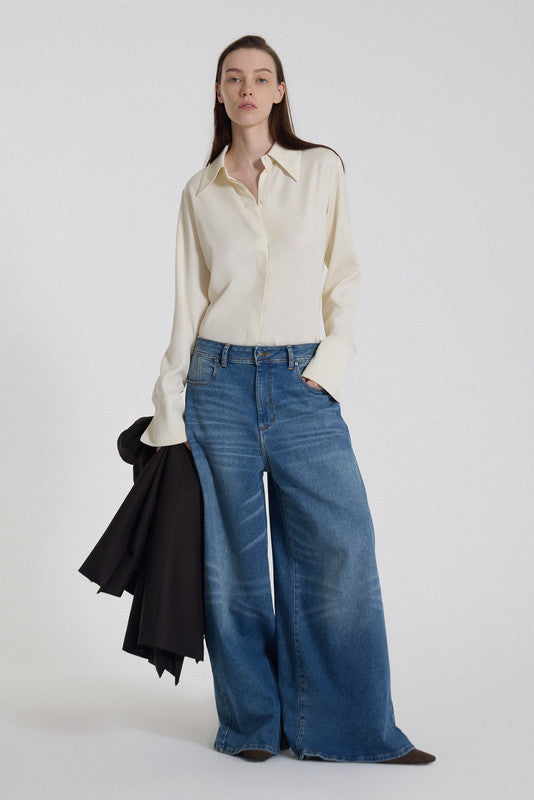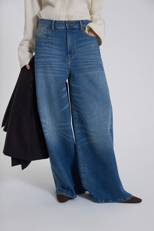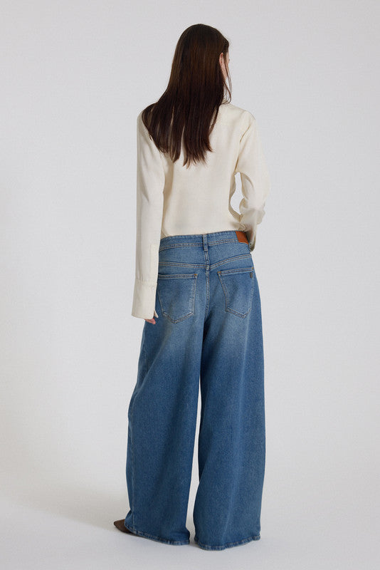 Jean Azul De Tiro Medio-Bajo De Calce Loose Muy Suelto Y Relajado. 58% Algodón - 37%Poliester - 4% Rayón - 1% Elastano. Te Recomendamos Comprate Un Talle Menos Al Que Soles Usar