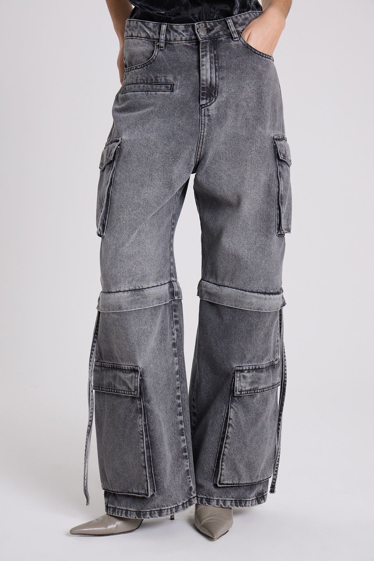 Jean De Calce Baggy, Amplio Y Cómodo. Bolsillos Cargo. Las Piernas Inferiores Son Desmontables Gracias A Cierres Ocultos, Lo Que Permite Transformarlo Fácilmente En Una Bermuda. Lavado Acid Wash
