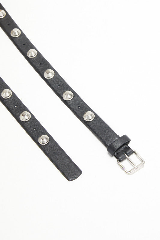 Cinturón De Cuero Con Remaches Y Hebilla Texturada En Baño Niquel.