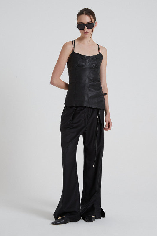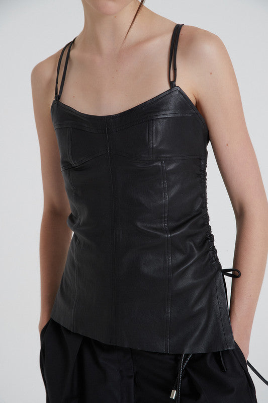 Top Bretelero De Cuero De Oveja Con Recortes. Jareta De Ajuste En Lateral Y Cierre Invisible En Espalda. 100% Cuero Ovino