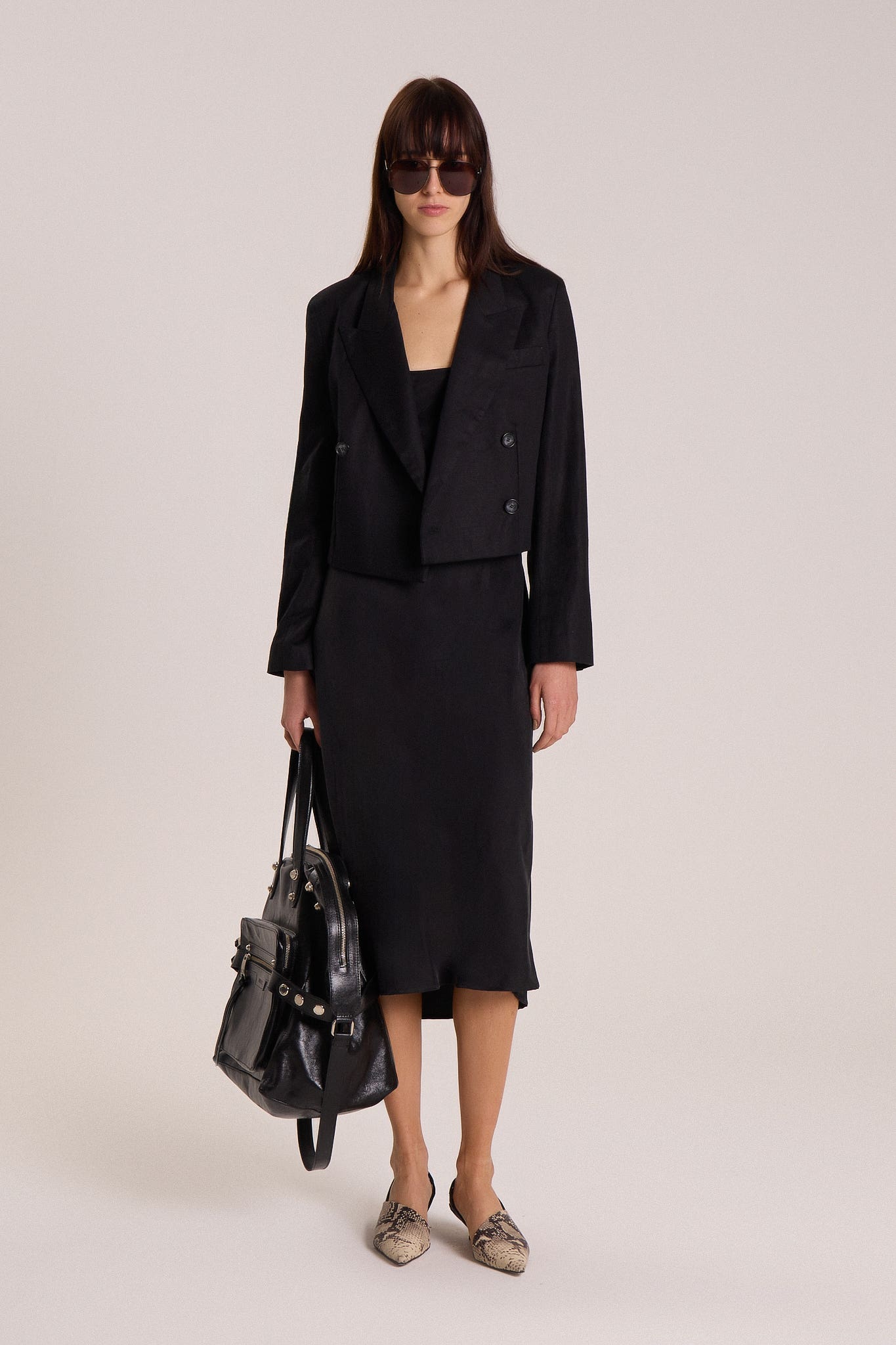 Vestido De Cupro. Largo Midi Con Escote Redondeado, Sin Mangas. 60%Cupro 40%Rayon
