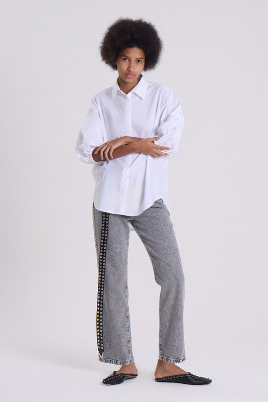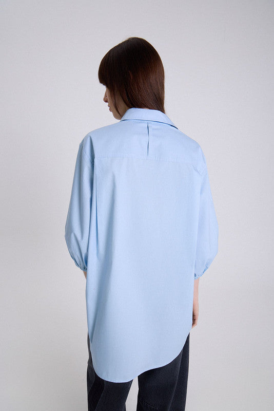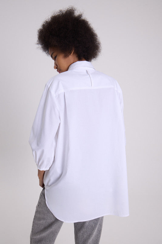Camisa En Poplin De Algodón. Calce Overzise Con Cartera Y Botones A La Vista. Bolsillo Plaque En Delantera Con Tapa. Presillas De Hombro Con Boton A Tono Y Puño Doble. Detalle De Bordado Isologo Algodón 100%