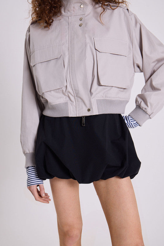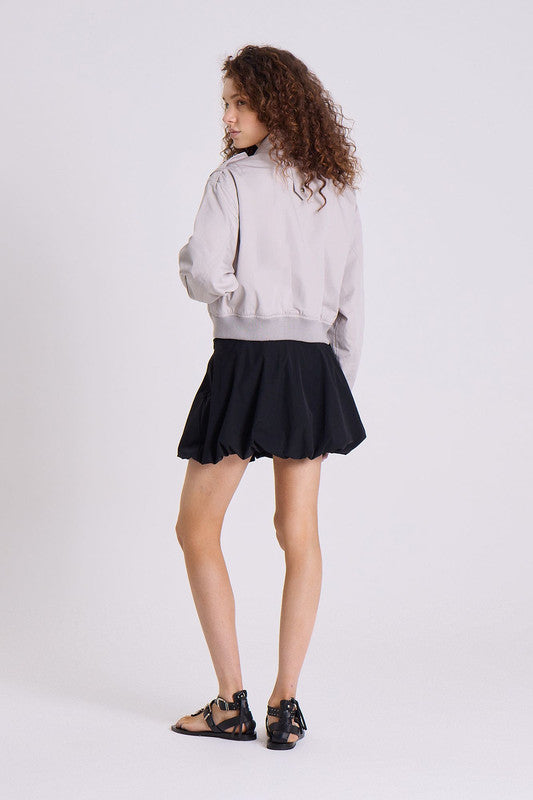 Mini Falda Cher. Nochera, Con Tela Papelosa, De Look Moderno. La Silueta Es Balloon, De Tendencia, Con Frunces Y Volumen En La Parte Inferior. Ideal Para Combinar Con Tops De Noche, Con Fit Al Cuerpo. Composición: 92%Nylon 8%Spandex
