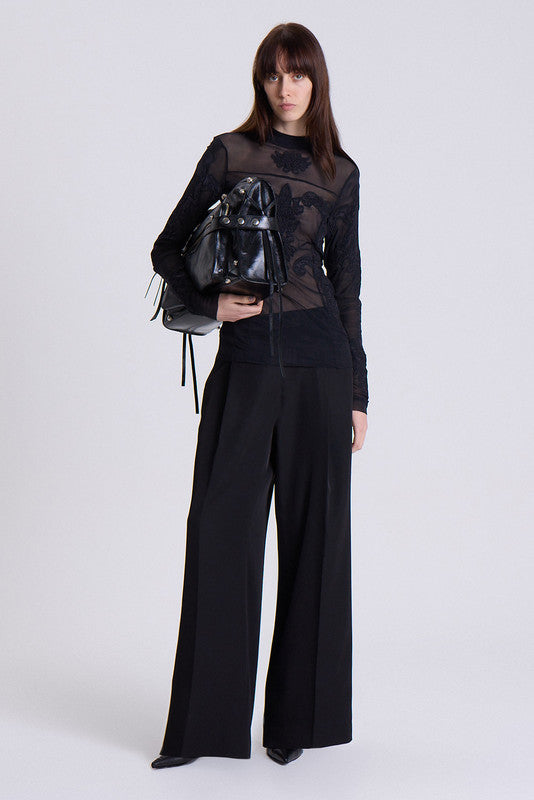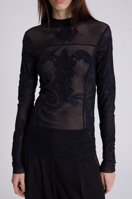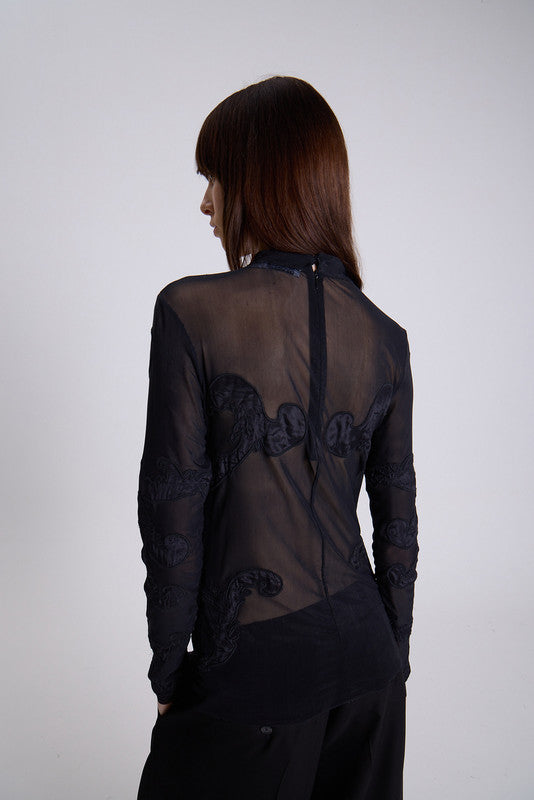 Top Manga Larga De Mesh Combinado Con Viscosa. Cierre Invisible En Espalda. 30% Nylon 70% Lycra + Complemeto 100% Viscosa