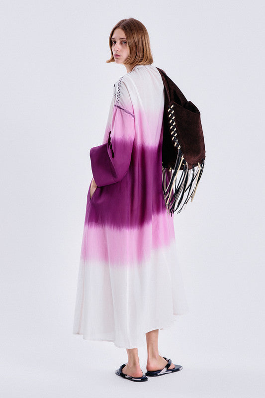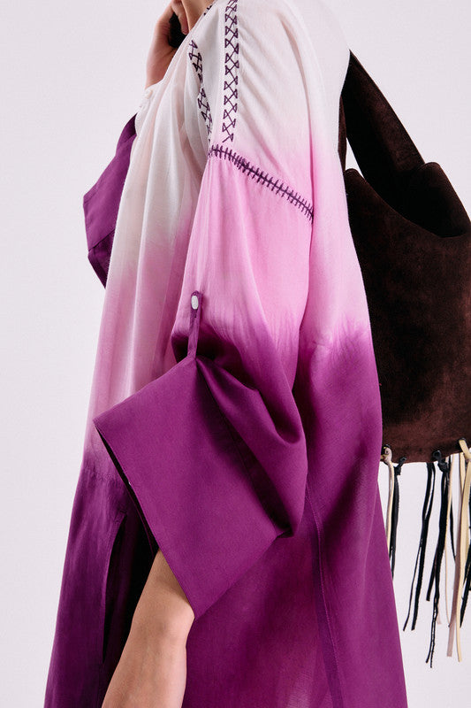 Vestido De Algodón Camisero. Fit Al Cuerpo. Escote A La Base. Falda Con Leve Evasé. Tiene Proceso De Batik En Dos Colores. En Los Hombros Tiene Bordados Con Hilo De Algodón 55% Algodón 45% Viscosa