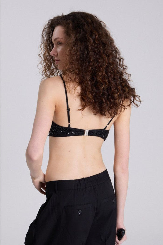 Top Bretelero Bordado A Mano. Tiene Un Broche Metalico En La Espalda Y Breteles Regulables. Posee Forreria De Viscosa A Tono. 100% Viscosa. Forreria: 100% Viscosa