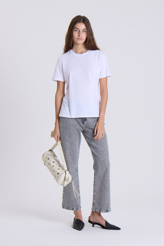 Remera De Jersey De Algodón, Fit Clásico. Manga Corta. Escote Redondo A La Base. Bordado A Tono En Frente De Prenda. Lleva Un Proceso Artesanal De Teñido En Prenda Que Puede Variar En Cada Una. Algodón 100%