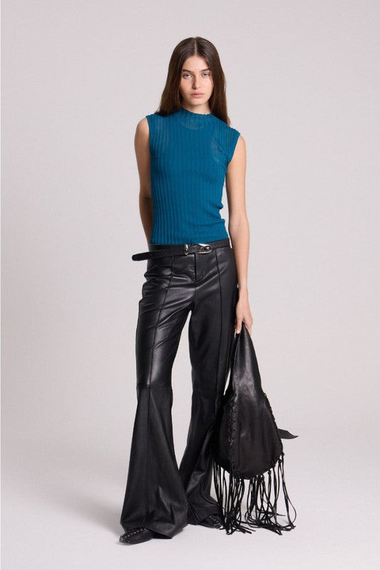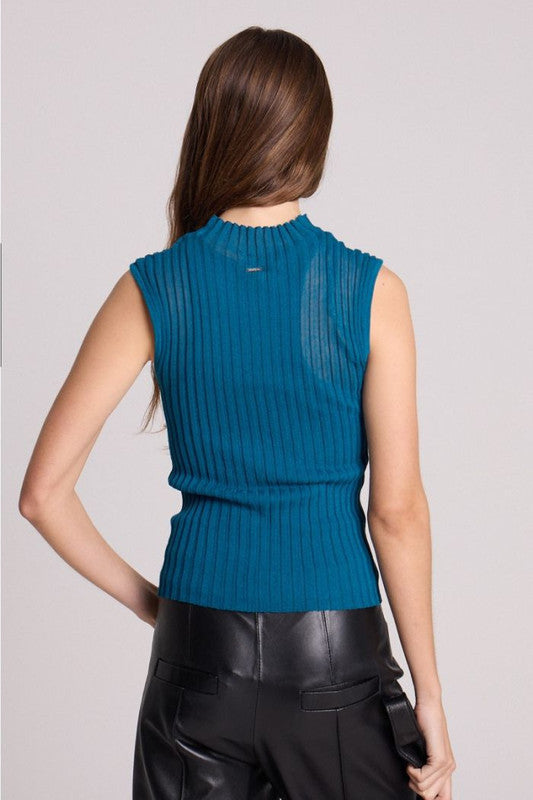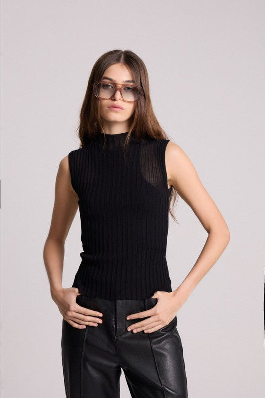 Top De Cuello Alto, Tejido En Punto Rib Extrafino, Generando Transparencia. Tiene Un Top Interno Tejido En Viscosa. Exterior: 89% Viscosa 11% Nylon- Top Interno: 65% Viscosa 35% Nylon