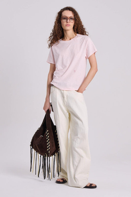 Remera Manga Corta De Algodón Peruano, Escote Redondo A La Base Y Detalle De Costuras. Tiene Bordado Marcario En El Frente 100% Algodón Peruano