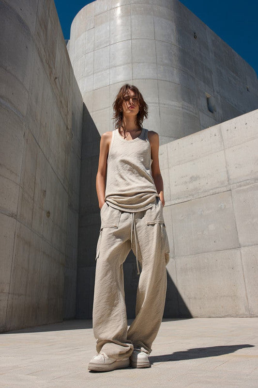 Musculosa De Flamé, Con Escote Redondo Y Bordado Marcario En El Frente. Hecha En Peru 100% Algodón Peruano