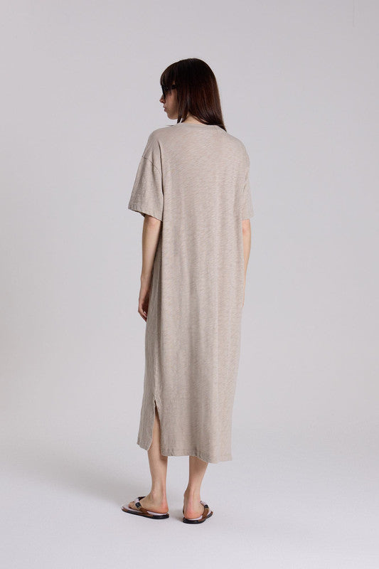Vestido Largo, De Silueta Amplia, Con Escote Redondo. Confeccionado En Flamé. Hecho En Peru 100% Algodón Peruano