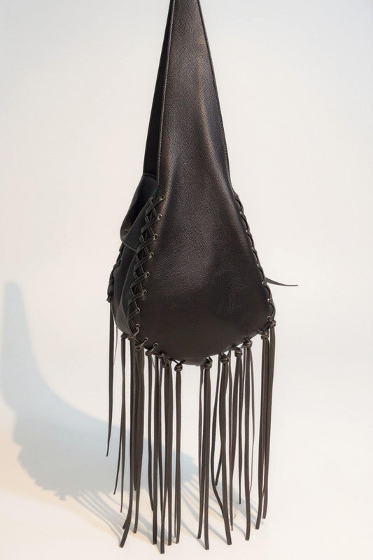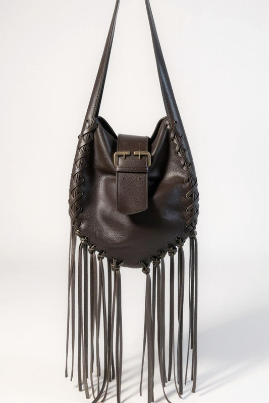 Cartera De Cuero Con Flecos Largos Trenzado En Laterales, Cierra Con Boton Iman En Interior. Correa De Cuero. Interior Forrado En Gabardina. Bolsillo Interno. Medidas: 29x27cm 100% Cuero Vacuno 100% Cuero Vacuno