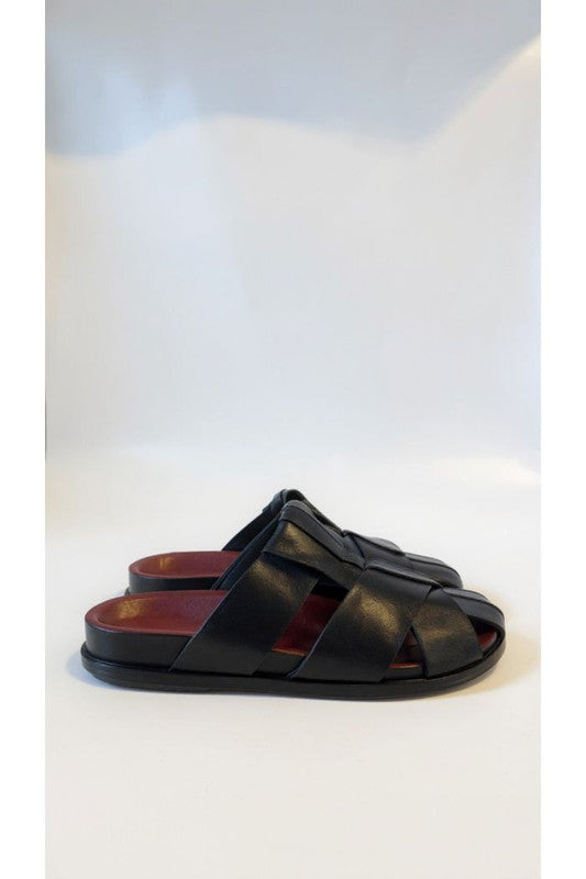 Zueco Con Capellada De Tiras Entrelazadas Con Grabado En Contornos. Taco Isla.Interior Forrado. Plantilla Confortable. 100% Cuero Vacuno. 100% Cuero Vacuno
