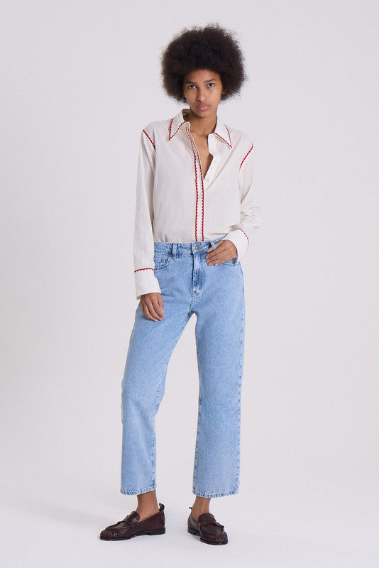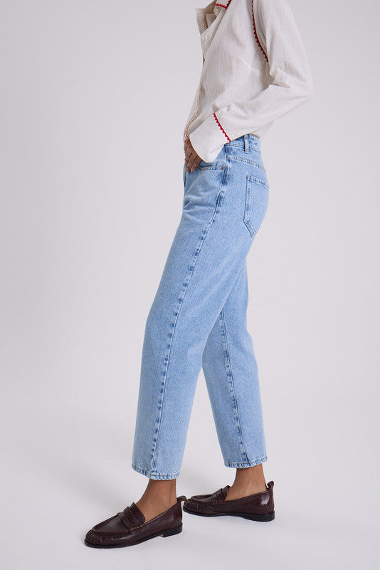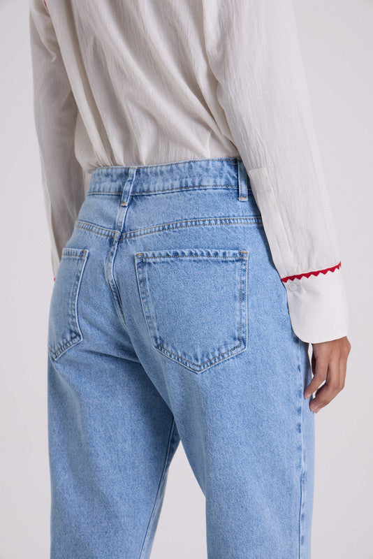 Jean Cher. Recto De Tiro Medio Bajo, Calce Al Cuerpo. Largo Al Tobillo. Lavado Acid Wash
