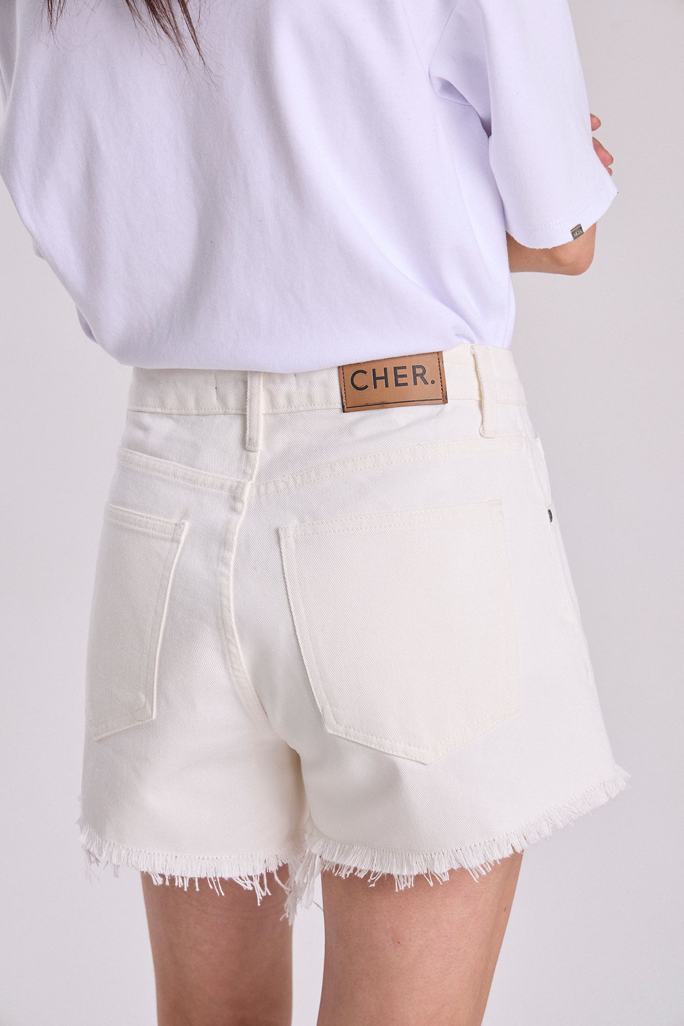 Short Cher. De Denim Tiro Medio Bajo Con Ruedo Al Corte. Tiene Calce Relajado Y Estructura Clásica De Cinco Bolsillos. El Ruedo Deshilachado Le Aporta Un Look Fresco Y Descontracturado, Ideal Para El Verano. Lavado Suavizado